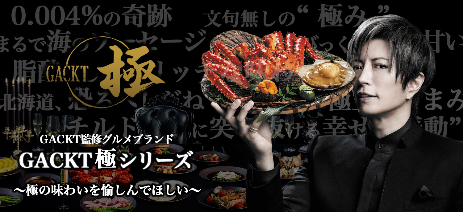 『GACKT極シリーズ』は、GACKTとOCEAN(株式会社オーシャン)の「まだ知られていない美味しいものをみんなに食べてもらいたい」という想いから生まれた「美食ブランド」。